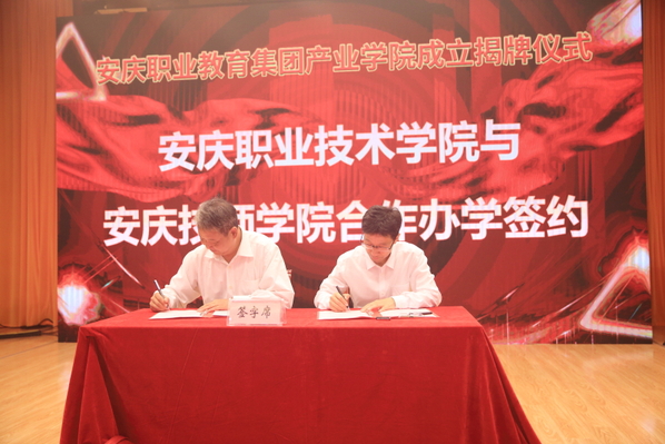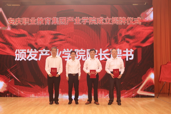 9月25日上午,安慶職教集團(tuán)化工產(chǎn)業(yè)學(xué)院、汽車(chē)產(chǎn)業(yè)學(xué)院和數(shù)字產(chǎn)業(yè)學(xué)院在集團(tuán)理事長(zhǎng)單位安慶職業(yè)技術(shù)學(xué)院正式揭牌成立。副市長(zhǎng)王愛(ài)武出席儀式并講話。集團(tuán)理事長(zhǎng)安慶職業(yè)技術(shù)學(xué)院黨委書(shū)記王進(jìn),集團(tuán)副理事長(zhǎng)、安慶職業(yè)技術(shù)學(xué)院院長(zhǎng)畢明生,安慶師范大學(xué)副校長(zhǎng)汪時(shí)珍以及安慶市教體局局長(zhǎng)胡海生,集團(tuán)副理事長(zhǎng)、安慶職業(yè)技術(shù)學(xué)院副院長(zhǎng)李克讓?zhuān)瘓F(tuán)理事會(huì)理事,產(chǎn)業(yè)學(xué)院理事會(huì)理事、院長(zhǎng)、副院長(zhǎng),安慶職業(yè)技術(shù)學(xué)院領(lǐng)導(dǎo)班子成員出席。