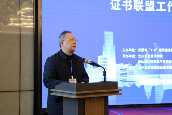 1月9日,安徽省“1+X”(BIM)證書(shū)聯(lián)盟工作研討會(huì)在安慶世紀(jì)緣酒店成功舉辦。安慶職業(yè)技術(shù)學(xué)院校長(zhǎng)畢明生,副校長(zhǎng)、安徽省BIM證書(shū)聯(lián)盟秘書(shū)長(zhǎng)譚維奇,廊坊市中科建筑產(chǎn)業(yè)化創(chuàng)新研究中心副主任、江蘇城鄉(xiāng)建設(shè)職業(yè)學(xué)院副校長(zhǎng)王偉等出席會(huì)議并講話。來(lái)自安徽省BIM證書(shū)聯(lián)盟的22所院校建工院院長(zhǎng)和相關(guān)骨干老師、以及廊坊中科安徽省工作辦公室、杭州品茗安控信息技術(shù)股份有限公司的代表參加了會(huì)議。會(huì)議由安慶職業(yè)技術(shù)學(xué)院建筑工程學(xué)院負(fù)責(zé)同志主持。
