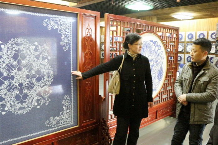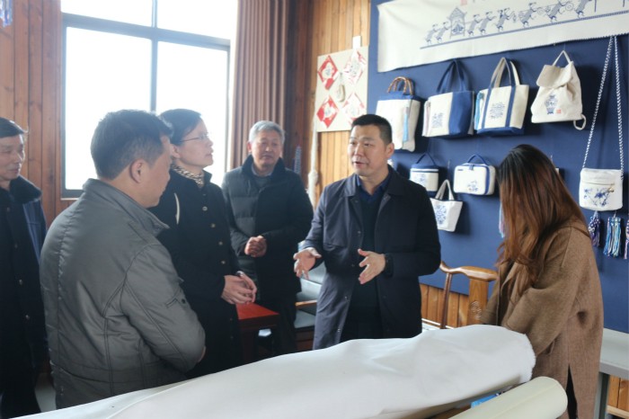倪進一行到校后即深入到該校文化產(chǎn)業(yè)示范基地申報主體望江挑花保護與傳承基地,實地考察了望江挑花會客廳、演藝廳、展覽室、技能大師工作室、望江挑花博物館等場所,認(rèn)真聽取了該?;厩闆r的介紹,詳細(xì)查閱了申報材料,并對照省第七批文化產(chǎn)業(yè)示范基地有關(guān)認(rèn)定標(biāo)準(zhǔn),提出了指導(dǎo)性建議。倪進對該校堅持“職業(yè)教育、文化傳承、旅游發(fā)展”的特色辦學(xué)之路,充分發(fā)揮地方特色文化資源,吸收和創(chuàng)新徽派文化,籌建國家非遺望江挑花保護與傳承基地,設(shè)立望江挑花博物館;堅持非遺活態(tài)傳承,積極研發(fā)、生產(chǎn)特色文化旅游產(chǎn)品,走市場化、產(chǎn)業(yè)化發(fā)展道路;采用“公司+農(nóng)戶”的運營模式,輻射帶動貧困戶增收,助力脫貧攻堅等創(chuàng)新舉措及所取得的成績給予充分肯定和高度評價。