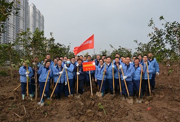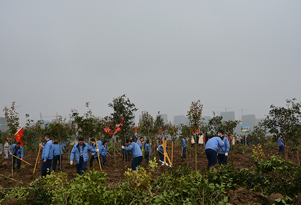 上午,環(huán)新集團(tuán)三十多名職工乘坐大巴車早早的趕到,大家拿起鐵鍬,三人一隊(duì)、兩個(gè)人一組,有序的將一棵棵樹苗栽下。遠(yuǎn)處,別的組隊(duì)也在熱情勞動(dòng)中,整個(gè)現(xiàn)場一派火熱景象。經(jīng)過一個(gè)上午的努力,原本光禿禿的月形社區(qū)閑地一片生機(jī)勃勃。