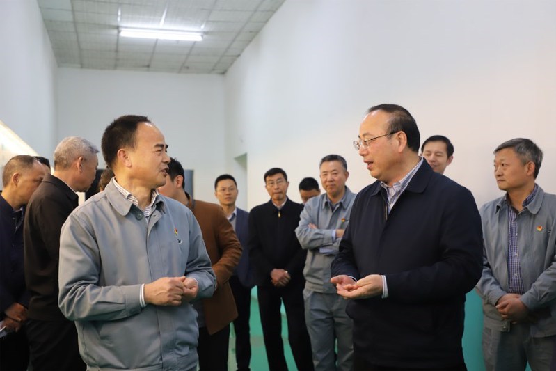 3月31日下午,安慶市委書記張祥安,市領(lǐng)導(dǎo)花家紅、宋圣軍等一行來安徽華茂調(diào)研,華茂公司領(lǐng)導(dǎo)倪俊龍、左志鵬、劉春西、胡孟春、戴黃清、楊圣明在八分廠接待了調(diào)研組一行。