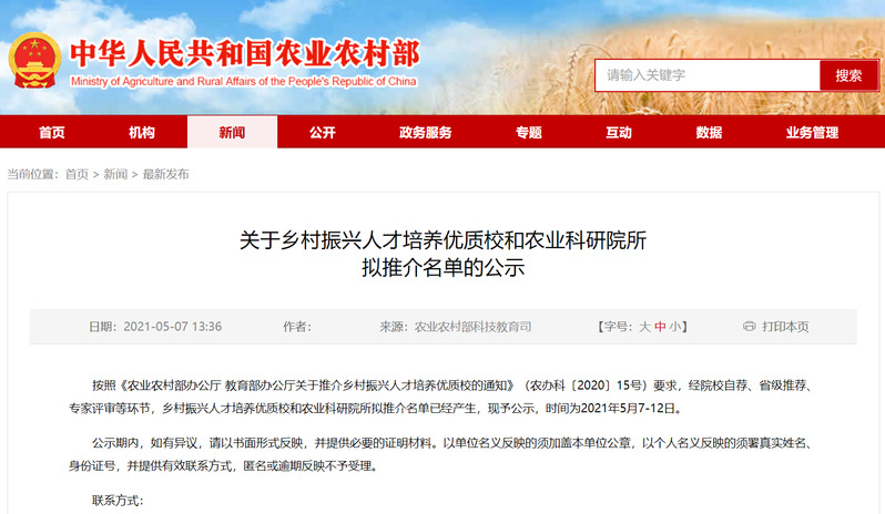 日前,農(nóng)業(yè)農(nóng)村部對(duì)鄉(xiāng)村振興人才培養(yǎng)優(yōu)質(zhì)校和農(nóng)業(yè)科研院所擬推介名單進(jìn)行公示,安慶職業(yè)技術(shù)學(xué)院喜獲入圍。
