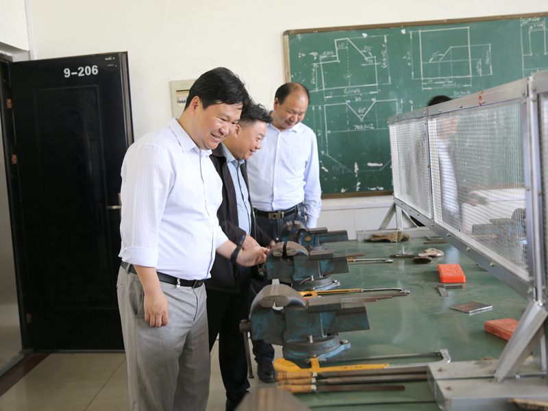趙偉一行實地察看校容校貌并深入教學實訓基地,了解學校辦學規(guī)模、基礎設施、專業(yè)設置、實習實訓、招生就業(yè)、教師隊伍建設、技能人才培養(yǎng)等情況。