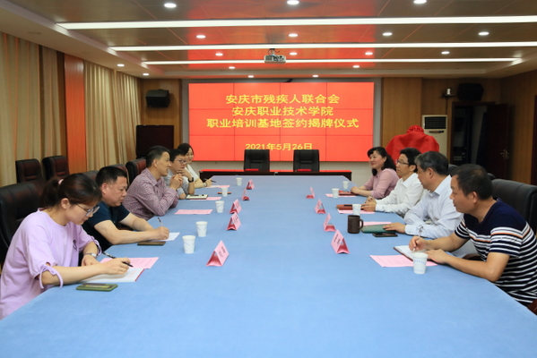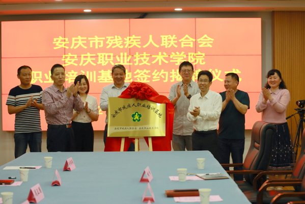 5月26日下午,安慶市殘疾人聯(lián)合會與安慶職業(yè)技術(shù)學(xué)院共建的安慶市殘疾人職業(yè)培訓(xùn)基地簽約揭牌儀式在安慶職院舉行。