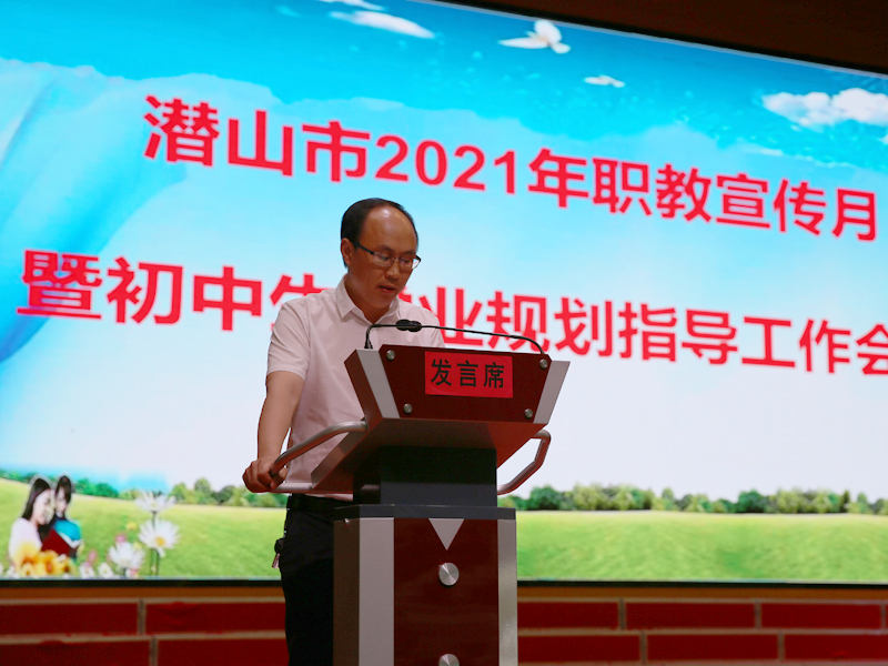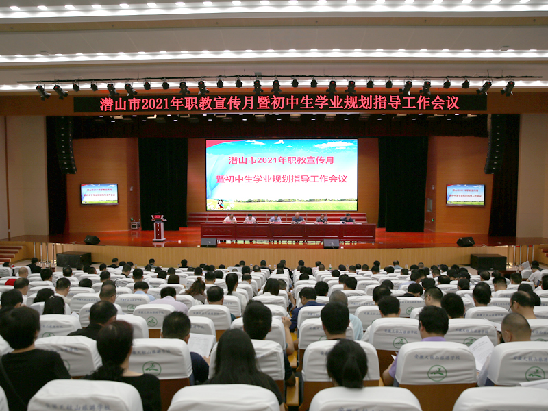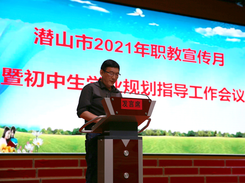2021年5月14日,在安慶市職業(yè)教育宣傳月活動(dòng)之際,潛山市教育局在安徽天柱山旅游學(xué)校召開(kāi)了潛山市2021年職業(yè)教育宣傳月暨初中生學(xué)業(yè)規(guī)劃指導(dǎo)工作會(huì)議,部署安排職教宣傳和初中生學(xué)業(yè)規(guī)劃指導(dǎo)工作。此次會(huì)議是2021年全市職教宣傳和招生工作的動(dòng)員大會(huì),開(kāi)啟了2021年潛山市職業(yè)教育宣傳月活動(dòng)的序幕。
