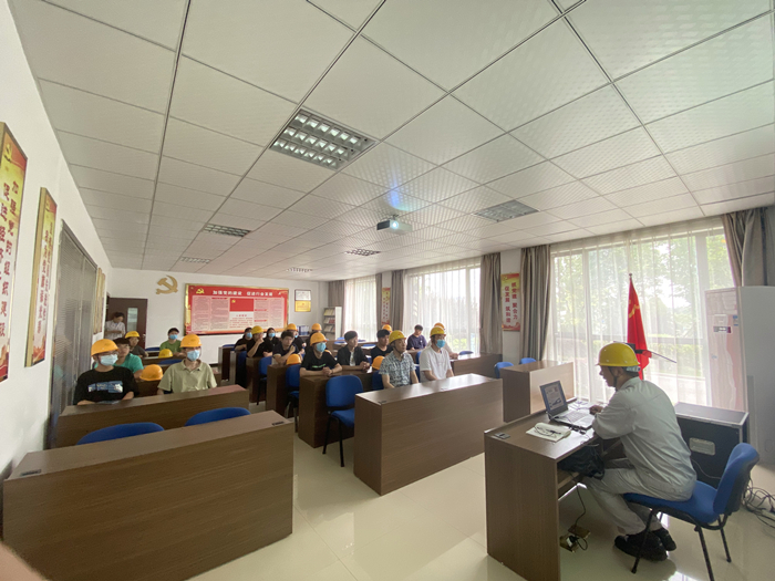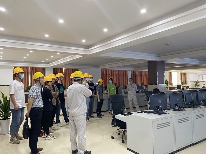 企業(yè)部長劉曉東詳細介紹了該公司基本概況、企業(yè)發(fā)展成果。還著重強調(diào)了化工企業(yè)安全生產(chǎn)注意事項和標(biāo)準(zhǔn),講解了危險化學(xué)品相關(guān)知識,明確了參觀過程中的注意事項,介紹了生產(chǎn)園區(qū)的化工生產(chǎn)環(huán)節(jié)與各種設(shè)備。同時,中控室工作人員現(xiàn)場向?qū)W生展示中控系統(tǒng)作為生產(chǎn)環(huán)節(jié)“大腦”的重要作用及運行原理。劉曉東與學(xué)生展開問答與討論,現(xiàn)場氛圍濃厚。