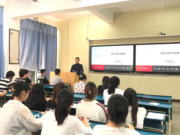 課上,李海龍結(jié)合自己的職業(yè)成長歷程,從“什么是酒店人”“我和碧桂園的故事”“未來看你們”三個方面介紹了酒店人的職業(yè)發(fā)展路徑,激發(fā)了學員們的職業(yè)興趣,并對他們的職業(yè)生涯規(guī)劃進行了指導。整個課堂氣氛活躍,互動環(huán)節(jié)學生積極提問并積極回答老師提出的問題。