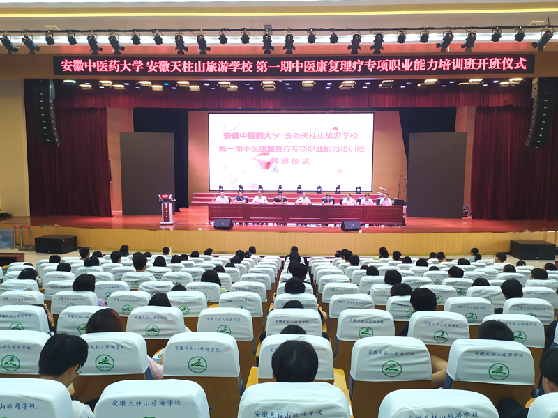 6月29日,安徽天柱山旅游學(xué)校與安徽中醫(yī)藥大學(xué)第一期中醫(yī)康復(fù)理療專(zhuān)項(xiàng)能力培訓(xùn)班開(kāi)班儀式在安徽天柱山旅游學(xué)校舉行。安徽中醫(yī)藥大學(xué)繼續(xù)教育學(xué)院院長(zhǎng)方正清,安徽中醫(yī)藥大學(xué)針灸推拿學(xué)院副教授周傳云,安徽中醫(yī)藥大學(xué)繼續(xù)教育學(xué)院社會(huì)培訓(xùn)部主任張曉峰,潛山市教育局黨委書(shū)記、局長(zhǎng)石敬忠,潛山市教育局相關(guān)科室負(fù)責(zé)人出席開(kāi)班儀式。旅游服務(wù)與管理專(zhuān)業(yè)2011班,制藥技術(shù)專(zhuān)業(yè)2016班全體學(xué)生共98人參加。