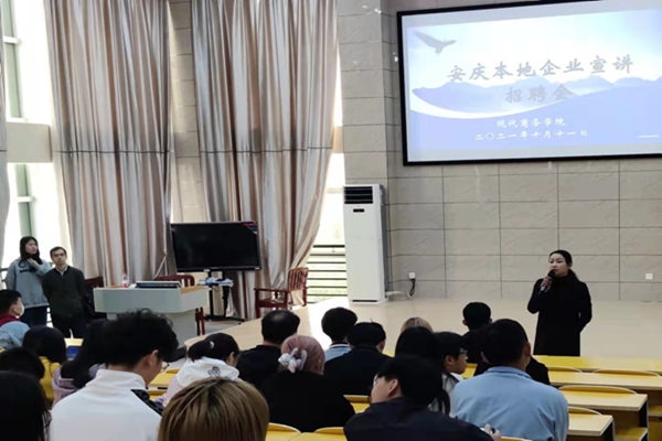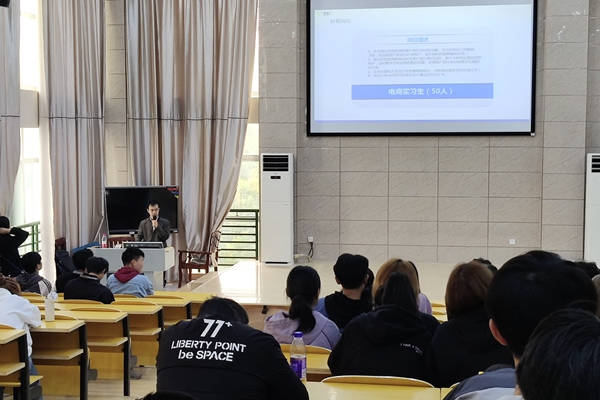 為進一步提高畢業(yè)生就業(yè)率和本地就業(yè)率,努力實現(xiàn)19級畢業(yè)生高質(zhì)量實習就業(yè)。安慶職業(yè)技術(shù)學院現(xiàn)代商務學院在19級全體學生中開展“暖心助航,就創(chuàng)青春”為主題的畢業(yè)生就業(yè)服務活動。10月11日中午,現(xiàn)代商務學院聯(lián)合安徽云戟網(wǎng)絡(luò)科技有限公司在3號教學樓316大教室召開本地企業(yè)首場招聘宣講會,該企業(yè)人力資源部門負責人、19級電商、市場營銷專業(yè)全體同學和相關(guān)輔導員參加了宣講會。
