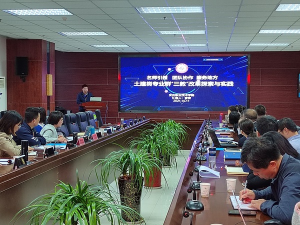 曹青代表團(tuán)隊(duì)以“名師引領(lǐng),團(tuán)隊(duì)協(xié)作,服務(wù)地方,土建類專業(yè)群“三教”改革探索與實(shí)踐”為主題,分別從建設(shè)思路、教師隊(duì)伍改革、課程與資源建設(shè)、教法改革與成效四個(gè)方面向與會(huì)人員作了報(bào)告交流。