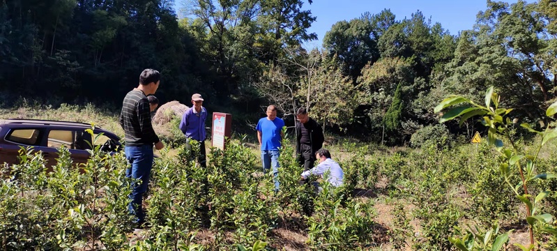 章杰義教授一到村,不顧旅途勞頓,徑直驅(qū)車到茶葉基地,到田間地頭現(xiàn)場講解茶苗的管理知識。在指導過程中,章教授就茶樹苗種的選擇、栽種時期和密度、枝葉修剪的高度、冬季病蟲害防治、越冬的水肥管理等關鍵問題向農(nóng)戶進行了詳細講解,并對農(nóng)戶提出的問題現(xiàn)場逐一解答。