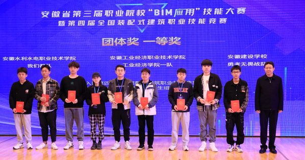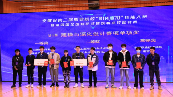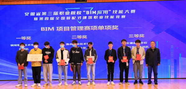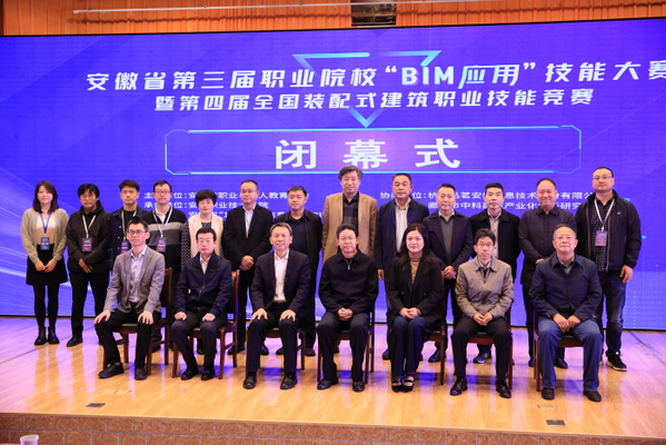 10月17日,安徽省第三屆職業(yè)院?!?/span>BIM應用”技能大賽暨第四屆全國裝配式建筑職業(yè)技能競賽建筑信息模型技術(shù)員(學生組)選拔賽完成全部比賽任務,圓滿落幕(BIM全稱Building Information Modeling,即建筑信息模型)。安慶市副市長楊林,省教育廳高教處主任任雯君,安慶職業(yè)技術(shù)學院黨委書記童宏葵、校長畢明生等領(lǐng)導出席閉幕式,為獲獎選手和團體頒獎,與大賽評審專家合影留念。安徽省BIM工程中心副主任、安徽建筑大學土木工程系主任陳東對大賽進行總結(jié)點評。中國建設教育協(xié)會教育技術(shù)專業(yè)委員會秘書長、廊坊市中科建筑產(chǎn)業(yè)化創(chuàng)新研究中心副主任張建奇,安徽省“1+X”BIM 證書聯(lián)盟秘書長、安慶職院副校長譚維奇分別講話。安慶職院酒店管理專業(yè)教師沈娟娟主持儀式。