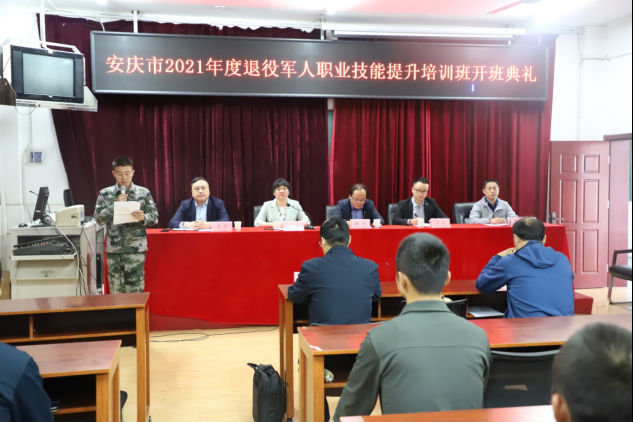 2021年10月13日上午,安慶技師學院在教學樓階梯教室舉行安慶市2021年度退役軍人職業(yè)技能提升培訓班開班典禮。此次培訓旨在為全市退役軍人提供精準高效的職業(yè)技能培訓,適應地方工作需要,更好融入社會發(fā)展。共有38名退役軍人共同參加了本期培訓班。