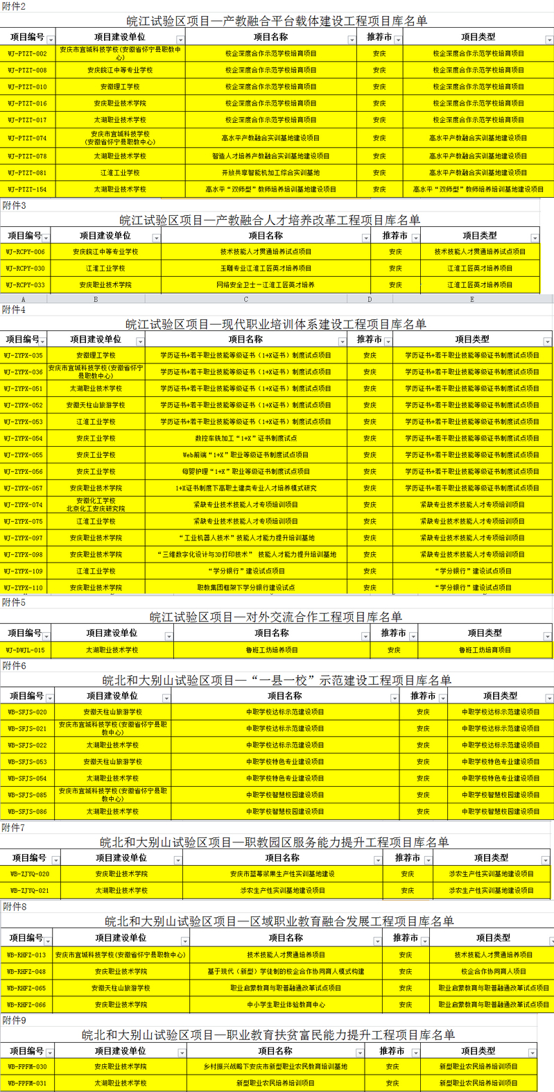 近日,安徽省教育廳公布了安徽省職業(yè)教育創(chuàng)新發(fā)展試驗(yàn)區(qū)項(xiàng)目培育庫(kù),集團(tuán)共43個(gè)項(xiàng)目入圍,名單如下: