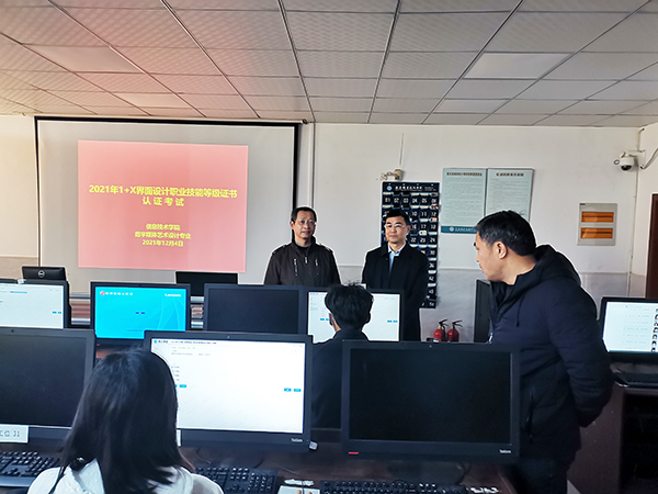 12月4日,安慶職業(yè)技術(shù)學(xué)院信息技術(shù)學(xué)院數(shù)字媒體藝術(shù)設(shè)計專業(yè)首次舉辦1+X界面設(shè)計職業(yè)技能等級證書認(rèn)證考試,2019級、2020級數(shù)字媒體藝術(shù)設(shè)計專業(yè)共計60名學(xué)生參加考試??荚嚻陂g,實(shí)驗(yàn)實(shí)訓(xùn)中心主任李進(jìn)恩、信息技術(shù)學(xué)院院長疏國會等深入現(xiàn)場巡查考務(wù)工作。