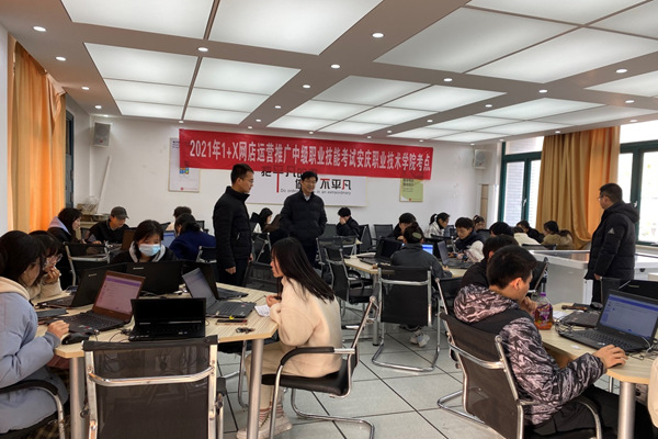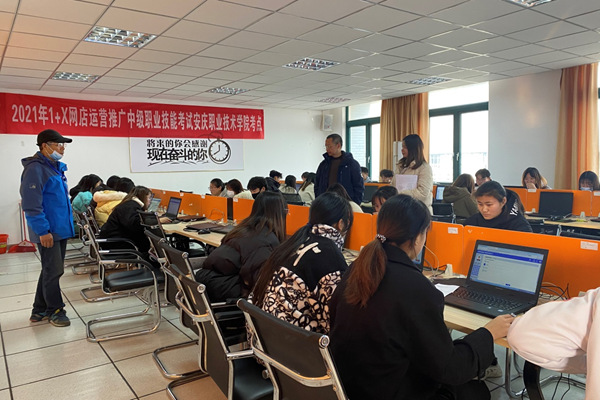 12月17日上午,安慶職業(yè)技術(shù)學(xué)院現(xiàn)代商務(wù)學(xué)院“1+X”網(wǎng)店運(yùn)營(yíng)推廣職業(yè)技能等級(jí)證書認(rèn)證考試在實(shí)訓(xùn)中心電子商務(wù)創(chuàng)新基地順利舉行,2020級(jí)電子商務(wù)專業(yè)共計(jì)65名同學(xué)參加了考試??荚嚻陂g,實(shí)訓(xùn)中心李進(jìn)恩主任、現(xiàn)代商務(wù)學(xué)院院長(zhǎng)高飛現(xiàn)場(chǎng)督導(dǎo)考務(wù)工作。