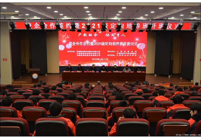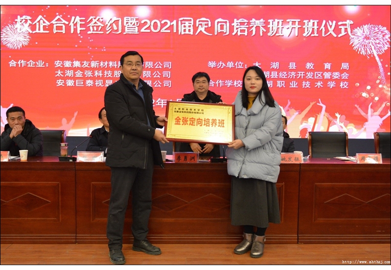 為進(jìn)一步推進(jìn)產(chǎn)教融合,加強(qiáng)校企合作,提升技能型人才培養(yǎng)質(zhì)量,增強(qiáng)職業(yè)教育適應(yīng)性,1月17日上午,太湖縣教育局、縣經(jīng)濟(jì)開發(fā)區(qū)管委會在太湖職業(yè)技術(shù)學(xué)??蒲袠嵌喙δ軓d舉行校企合作簽約暨2021級定向培養(yǎng)班開班儀式。