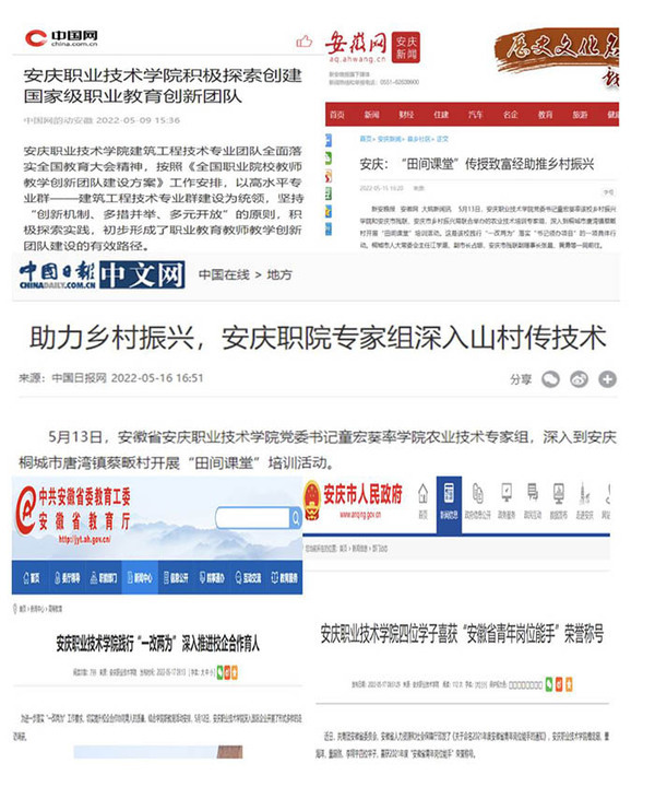 校宣傳部在職教周活動(dòng)開(kāi)展期間,進(jìn)行了一系列的新聞報(bào)道工作。通過(guò)板報(bào)、網(wǎng)站、電視、報(bào)紙、微信、QQ平臺(tái)等形式,著力宣傳報(bào)道職業(yè)教育政策、職業(yè)教育成果、優(yōu)秀畢業(yè)生事跡和職業(yè)教育服務(wù)經(jīng)濟(jì)社會(huì)發(fā)展的典型事例,先后被《中國(guó)日?qǐng)?bào)網(wǎng)》《中國(guó)網(wǎng)》《安徽教育網(wǎng)》《安慶市人民政府網(wǎng)》《掌上安慶》《安慶日?qǐng)?bào)》等轉(zhuǎn)發(fā)報(bào)道。并聯(lián)合團(tuán)委緊扣活動(dòng)周主題,暨中國(guó)共產(chǎn)主義青年團(tuán)成立100周年,開(kāi)展了“青春心向黨 建功新時(shí)代”快閃微視頻拍攝活動(dòng)。展示職教學(xué)子逐夢(mèng)成長(zhǎng),為生活帶來(lái)成功與幸福的成長(zhǎng)足跡,展顯出職教師生積極向上,奮發(fā)進(jìn)取的精神風(fēng)貌和熟練的專(zhuān)業(yè)技能。