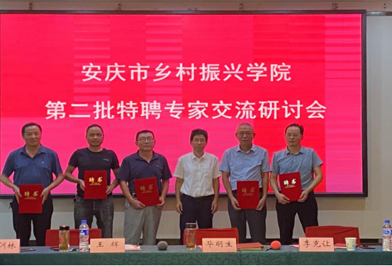 8月19日安慶市鄉(xiāng)村振興學院第二批特聘專家交流研討會在黃梅山莊順利舉行。安慶職業(yè)技術學院黨委副書記、校長畢明生出席并講話,校黨委副書記李克讓主持研討會。安慶市鄉(xiāng)村振興局副局長王輝,農(nóng)林與服裝學院、校企合作辦、培訓部負責同志及安慶市鄉(xiāng)村振興學院特聘專家共謀鄉(xiāng)村振興人才培養(yǎng)工作。