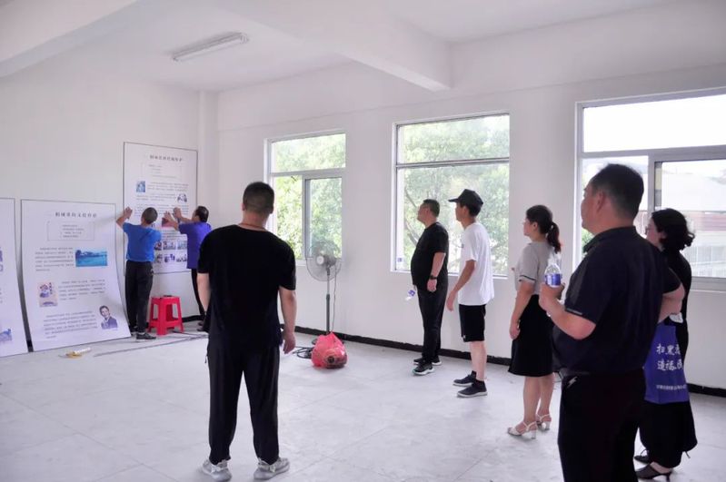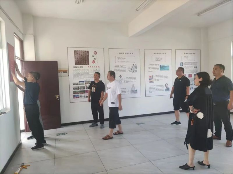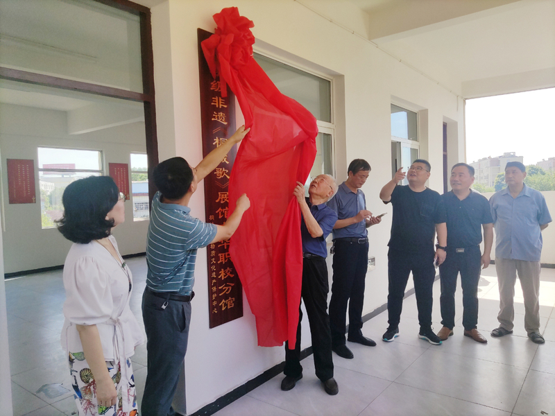 為進(jìn)一步深化校園傳習(xí)所傳承工作,市文化館和校方謀劃建設(shè)“國家級非遺《桐城歌》展館中華職校分館”,文化館(非遺保護(hù)中心)工作人員進(jìn)行實地考察勘測、擬定展覽內(nèi)容、融入多媒體展示、設(shè)計安裝展板等多個環(huán)節(jié),歷時三天完成展陳工作,于8月9日上午,由桐城市文化旅游體育局黨組書記、局長吳方勝和校方特邀的學(xué)校創(chuàng)辦人徐智明老先生共同為展館揭牌。下一步,桐城市文化館和校方再度推進(jìn)非遺校園傳承工作,擬在校內(nèi)設(shè)立“桐城市非遺四級代表性傳承人工作室”,此項工作正在籌備中。