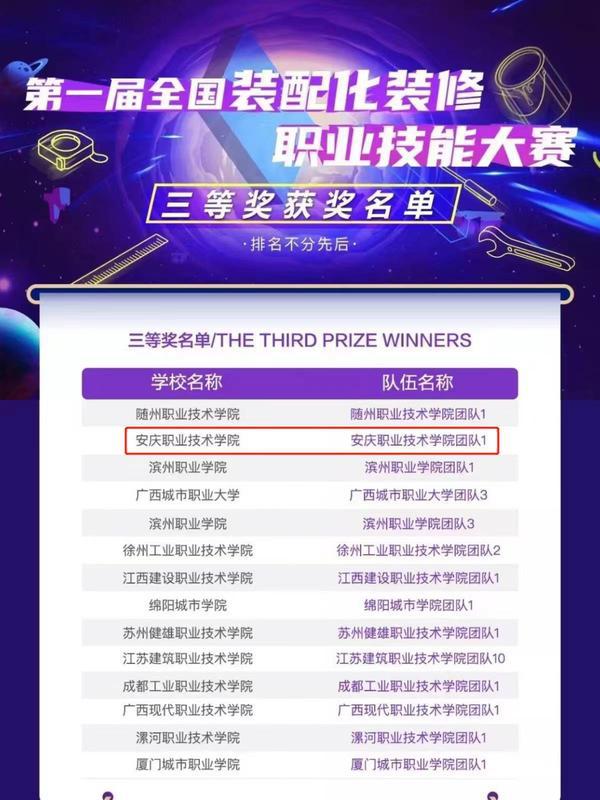 8月5日,第一屆全國(guó)裝配化裝修職業(yè)技能大賽——選拔賽如期舉辦,安慶職業(yè)技術(shù)學(xué)院建工學(xué)院建筑裝飾工程技術(shù)專業(yè)王慶成、夏高洋、許曉慧、耿琦偉四名學(xué)生參加了大賽,并喜獲全國(guó)三等獎(jiǎng)。