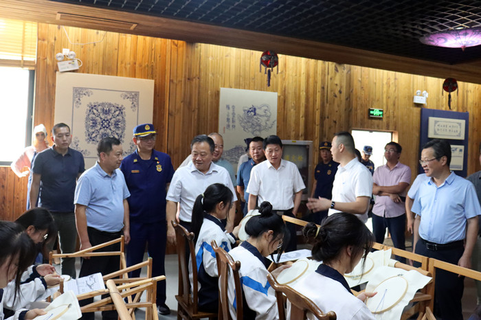宋國權(quán)到校后,實地考察了該校國家非遺望江挑花保護(hù)與傳承基地,望江縣勞模工匠教育基地、“同心筑夢”黨建和統(tǒng)戰(zhàn)基地、黨史學(xué)習(xí)教育基地、校史陳列室等場所。