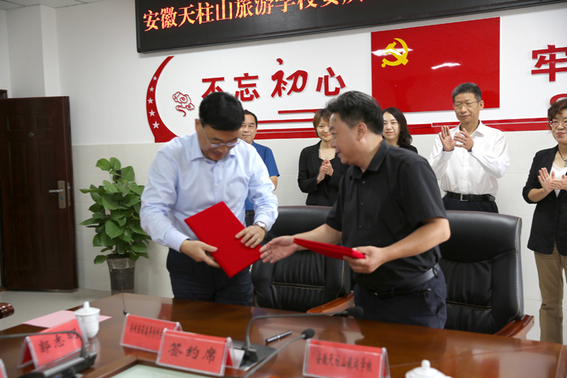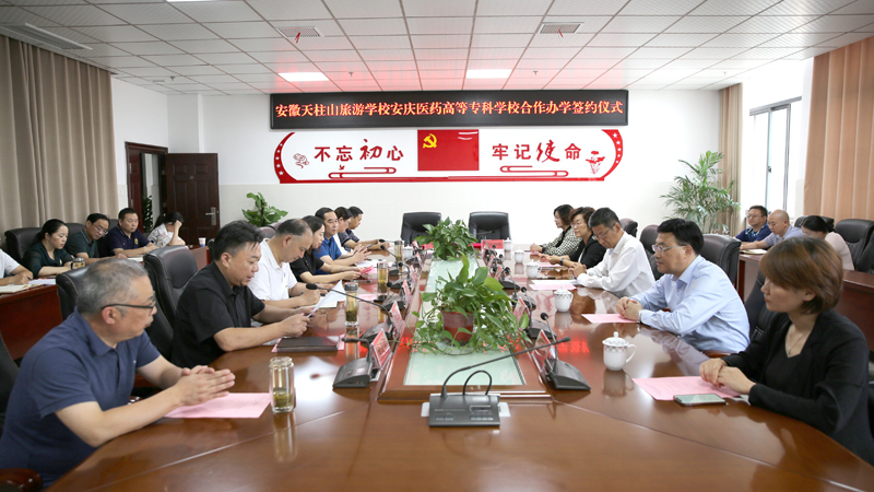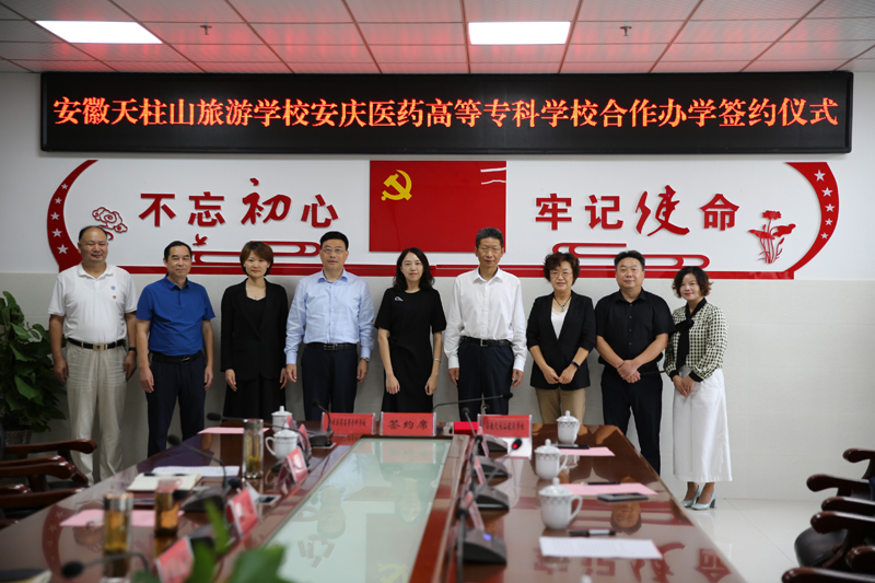 9月28日下午,安徽天柱山旅游學(xué)校與安慶醫(yī)藥高等??茖W(xué)校合作辦學(xué)簽約儀式在安徽天柱山旅游學(xué)校舉行。安慶醫(yī)藥高等??茖W(xué)校黨委副書記、校長姚文兵,黨委委員、副校長朱慶豐,潛山市副市長章瑩出席簽約儀式,潛山市教育局黨委書記、局長石敬忠主持儀式。