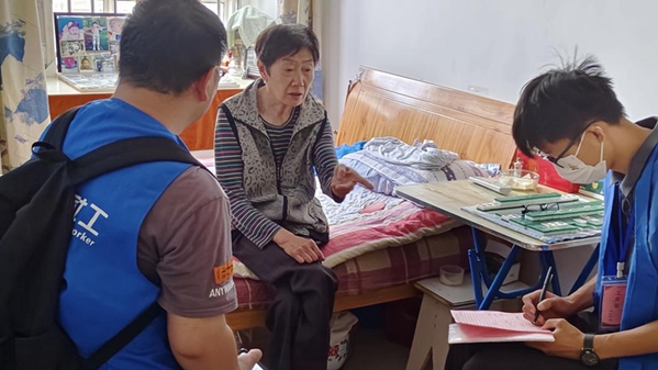 社區(qū)工作人員帶領志愿者們來到順安南苑小區(qū)獨居老人的家中進行慰問,查看居住環(huán)境、排查安全隱患,并對于老人的生活需求、身體健康情況,進行詳細的詢問及記錄。