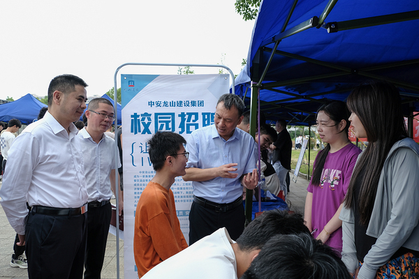 童宏葵首先來到安慶中安龍山建設集團有限公司宣講臺前,仔細詢問該公司用工需求情況,當?shù)弥摴九c安慶職院長期開展專業(yè)共建和人才培養(yǎng),目前還有10余名該校歷屆畢業(yè)生在該公司工作時,非常高興,對前來應聘的實習生說:目前建筑行業(yè)高質(zhì)量的就業(yè)崗位緊缺,希望同學們把握機會,選擇優(yōu)質(zhì)企業(yè)發(fā)展。