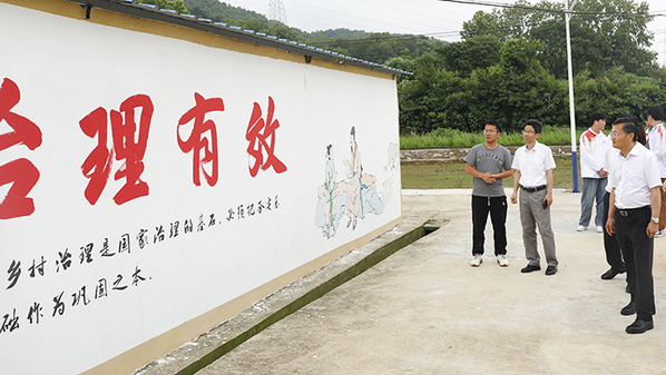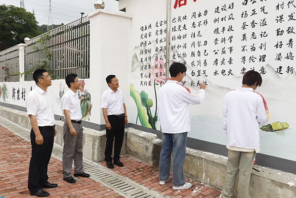 畢明生一行沿著修整一新的鄉(xiāng)間小路,看著周邊白凈的墻面上一幅幅生動的手繪畫面,聽著參與繪畫的師生的細致介紹,不時獲得沿途村民滿意的贊賞,對付出辛勤勞動的師生和創(chuàng)作成果給予了充分肯定。
