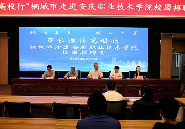 在全國上下認真學(xué)習(xí)領(lǐng)會黨的二十大精神之際,為貫徹落實黨中央、國務(wù)院關(guān)于“穩(wěn)就業(yè)”“保就業(yè)”等相關(guān)決策部署,全面落實全國高校畢業(yè)生就業(yè)工作會議精神,整合政校企三方資源,積極引導(dǎo)畢業(yè)生本地就業(yè)創(chuàng)業(yè),進一步提升安慶職業(yè)技術(shù)學(xué)院服務(wù)安慶地方經(jīng)濟高質(zhì)量發(fā)展能力,6月15日,“市長送崗高校行”桐城市校園專場招聘會和“太愛才-職等您來”太湖縣校園專場招聘會在安慶職院圖文信息中心舉行。校黨委副書記李克讓出席活動并致辭。桐城市副市長徐良平、太湖縣縣委組織部副部長,縣人力資源和社會保障局黨組書記、局長張文斌出席活動。
