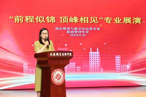 為提升和檢驗專業(yè)技能學習成效,促進課程思政第一課堂與第二課堂同向同行,推動畢業(yè)生本地就業(yè),5月31日下午,安慶職業(yè)技術學院管理服務學院酒店數字化運營、旅游管理專業(yè)聯合在幼兒三期實訓室舉行“前程似錦·頂峰相見”校企共聯專業(yè)展演活動。活動邀請了安慶會展中心會議中心酒店、合肥豐大國際酒店、安慶豐大酒店、安慶香瀾豪庭酒店、安慶碧桂園鳳凰酒店、安慶世紀緣酒店、中國移動安慶分公司等文旅相關企業(yè)出席。學校教務處、校團委等負責同志、管理服務學院班子及師生代表參加了此次展演活動。