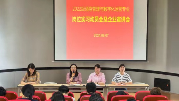 6月7日中午12點,2022級酒店管理與數(shù)字化運營專業(yè)在3棟216召開了崗位實習動員會,安慶職業(yè)技術學院管理服務學院院長陳穎、該院學生工作負責人、專業(yè)課教師以及全體2022級酒店管理與數(shù)字化運營專業(yè)學生參加。