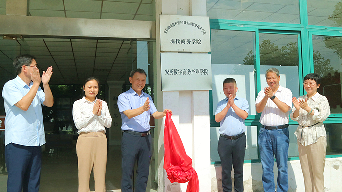 儀式上,童宏葵和查盛生共同為安慶數(shù)字商務(wù)產(chǎn)業(yè)學(xué)院揭牌。(文:余 瑰 圖:周佳欣 審稿:金啟勝)