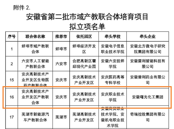 近日,安徽省教育廳發(fā)布公示,以安慶經(jīng)開區(qū)為依托,以安慶職業(yè)技術(shù)學(xué)院為牽頭學(xué)校,安徽環(huán)新集團(tuán)為牽頭企業(yè)組建的安慶經(jīng)濟(jì)技術(shù)開發(fā)區(qū)產(chǎn)教聯(lián)合體,作為安徽省首批省級市域產(chǎn)教聯(lián)合體建設(shè)項目,順利通過省教育廳考核驗收。安徽省首批省級市域產(chǎn)教聯(lián)合體建設(shè)項目立項12家,驗收通過9家。同時,以安慶職院為牽頭學(xué)校組建的安慶高新技術(shù)產(chǎn)業(yè)開發(fā)區(qū)產(chǎn)教聯(lián)合體,獲批為安徽省第二批省級市域產(chǎn)教聯(lián)合體立項建設(shè)項目。