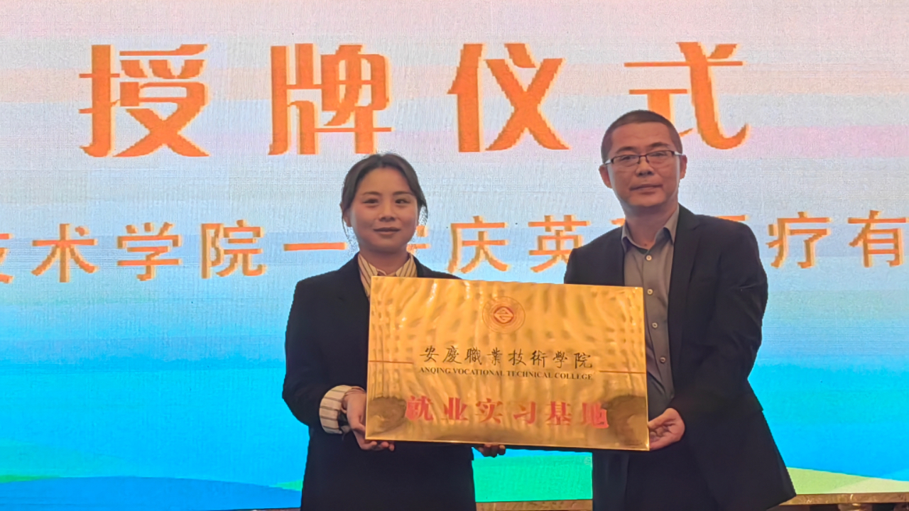 活動現(xiàn)場,安慶職院與安慶英科醫(yī)療有限公司舉行了就業(yè)實習(xí)基地授牌儀式。(文、圖:陳慧玲 審稿:桂 駿)