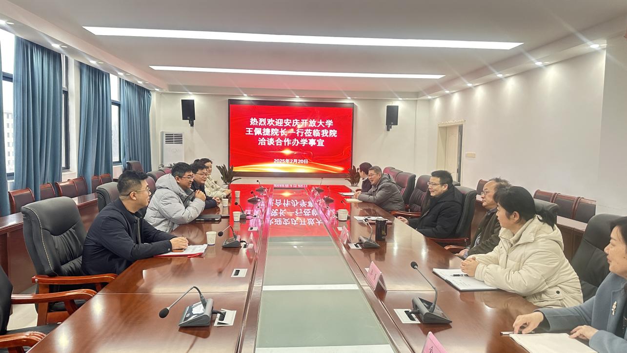 2025年2月20日上午,安慶開(kāi)放大學(xué)黨委副書(shū)記、校長(zhǎng)王佩捷,辦公室主任李玲、開(kāi)放教育學(xué)院院長(zhǎng)楊小軍、副院長(zhǎng)劉玄一行蒞臨安徽安慶技師學(xué)院,就兩校深度合作展開(kāi)洽談。學(xué)院黨委副書(shū)記、院長(zhǎng)徐英武攜院領(lǐng)導(dǎo)班子成員及系部負(fù)責(zé)同志熱情接待王佩捷校長(zhǎng)一行。