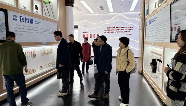 在安徽省刷業(yè)商會(huì)秘書長(zhǎng)丁躍進(jìn)的陪同下,金啟勝一行參觀了刷業(yè)小鎮(zhèn)客廳和“兩把刷子”眾創(chuàng)空間。丁躍進(jìn)詳細(xì)介紹了產(chǎn)業(yè)園“一園兩倉(cāng)兩平臺(tái)”(產(chǎn)業(yè)園、保稅倉(cāng)與海外倉(cāng)、刷博會(huì)平臺(tái)及聯(lián)合刷網(wǎng)平臺(tái))的運(yùn)營(yíng)模式。目前,源潭刷業(yè)產(chǎn)值逾百億元,規(guī)模居全國(guó)首位,獲評(píng)“中國(guó)刷業(yè)之都”稱號(hào)。源潭鎮(zhèn)還擁有全國(guó)唯一的省級(jí)刷制品質(zhì)量監(jiān)督檢驗(yàn)研發(fā)中心、全省唯一設(shè)于鄉(xiāng)鎮(zhèn)的“安徽省刷業(yè)商會(huì)”、全省首個(gè)鄉(xiāng)鎮(zhèn)級(jí)保稅倉(cāng)庫(kù)及跨境電商產(chǎn)業(yè)園,為入駐企業(yè)提供跨境電商全鏈條服務(wù),涵蓋品牌孵化、物流配送、政策申報(bào)及國(guó)際營(yíng)銷等環(huán)節(jié)。