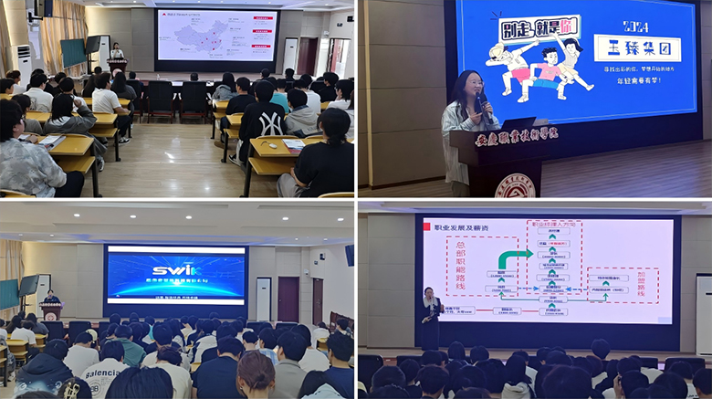 在宣講環(huán)節(jié),企業(yè)代表依次登臺(tái),各展風(fēng)采,全方位、多維度地深入介紹公司成長(zhǎng)軌跡、職位空缺“地圖”及職業(yè)發(fā)展“上升通道”。訂單班企業(yè)安慶安暢網(wǎng)絡(luò)科技有限公司率先宣講,詳細(xì)介紹了公司發(fā)展愿景、崗位需求和工作環(huán)境,他們專注于公有云運(yùn)維領(lǐng)域,并推出CTTP云計(jì)算技術(shù)人才發(fā)展計(jì)劃及選拔程序,計(jì)劃招聘30名云計(jì)算運(yùn)維工程師;安徽玉臻科技集團(tuán)聚焦技術(shù)服務(wù)崗位,提出100余人的招聘需求;安徽鄰幾便利店有限公司則瞄準(zhǔn)新零售領(lǐng)域,提供了20個(gè)智慧物流與運(yùn)營(yíng)管培生崗位;安徽思偉奇智能科技有限公司針對(duì)智能制造領(lǐng)域,提出了儲(chǔ)備干部的招聘方案;安慶南冥眾創(chuàng)動(dòng)畫制作有限公司以數(shù)字創(chuàng)意產(chǎn)業(yè)為核心,計(jì)劃招募30名動(dòng)畫設(shè)計(jì)與數(shù)字媒體領(lǐng)域的專業(yè)人才,其他企業(yè)專設(shè)招聘展位,進(jìn)行宣傳交流。