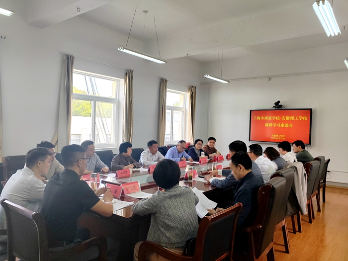 4月16日,上海市商業(yè)學校黨委書記、校長王云璽率調(diào)研組一行七人蒞臨安徽理工學??疾旖涣?。安徽理工學校黨委副書記、校長李海軍攜黨政領(lǐng)導班子成員出席座談,相關(guān)職能部門負責人參加交流。