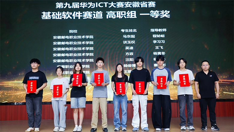 信息技術(shù)學院高度重視本屆賽事組織工作,積極動員并選拔優(yōu)秀學生參賽。在初賽階段,各賽道共有129名學生踴躍報名參加,27人成功晉級,在安徽省賽中,該院學子表現(xiàn)優(yōu)異,獲得等級獎19項。其中王麗、包明遠、王雅琴分別獲云賽道和基礎軟件賽道一等獎,徐蘇瑞等11人分獲云賽道、基礎軟件賽道和網(wǎng)絡賽道二等獎,王叢叢等5人獲得三等獎。頒獎典禮上,該院榮獲優(yōu)秀組織院校獎,充分展現(xiàn)了學院在ICT人才培養(yǎng)方面的扎實基礎與育人成效。