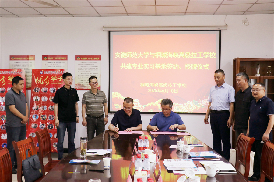 會上舉行了隆重的簽約授牌儀式,安師大生態(tài)與環(huán)境學院院長胡好遠與桐城海峽高級技工學校校長郭昌盛分別代表雙方簽署合作協(xié)議,并進行了現(xiàn)場授牌。
