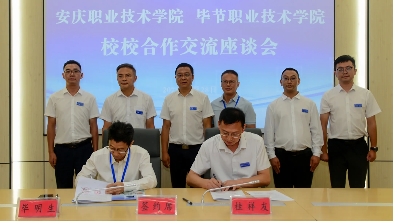 8月28日至29日,安慶職業(yè)技術(shù)學(xué)院校長(zhǎng)畢明生應(yīng)邀赴畢節(jié)職業(yè)技術(shù)學(xué)院參加2025中國(guó)-東盟教育交流周“校旅結(jié)合·職業(yè)教育助力鄉(xiāng)村振興”活動(dòng),并與畢節(jié)職業(yè)技術(shù)學(xué)院簽署框架合作協(xié)議。