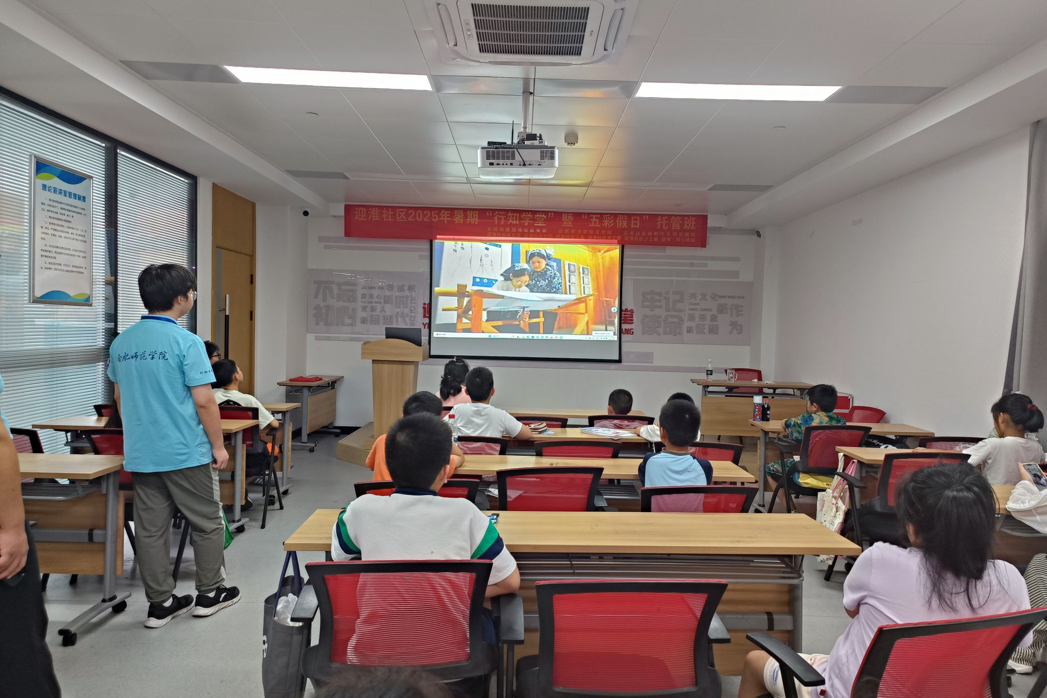 為幫助學(xué)員深入理解望江挑花的文化價(jià)值,活動(dòng)特別設(shè)置“非遺小講堂”環(huán)節(jié),播放何冬霞對(duì)國家非遺望江挑花的介紹視頻,帶領(lǐng)小朋友們?cè)朴伟矐c皖江中等專業(yè)學(xué)校國家非遺望江挑花保護(hù)與傳承基地。展覽館內(nèi)陳列的挑花作品琳瑯滿目,每一幅都蘊(yùn)含著深厚的文化底蘊(yùn)。而基地的迎賓廳,更是仿照當(dāng)年望江挑花進(jìn)入人民大會(huì)堂安徽廳的裝飾場景復(fù)制而成。望江作為“三孝之鄉(xiāng)”,迎賓廳內(nèi)還特別展示了以二十四孝為主題的挑花作品,傳遞著孝道文化的深刻內(nèi)涵。