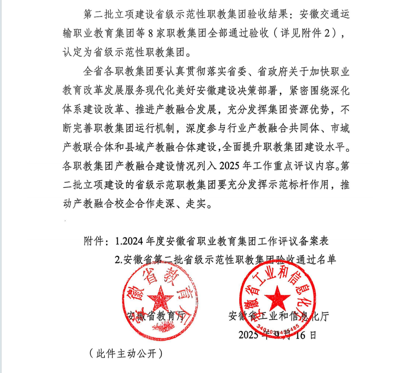 近日,安徽省教育廳、安徽省工業(yè)和信息化廳共同發(fā)文,安慶職教集團(tuán)在全省63家職教集團(tuán)2024年度工作運(yùn)行情況綜合評(píng)價(jià)中,以卓越的表現(xiàn)和顯著的成果再度獲評(píng)安徽省A類職教集團(tuán),實(shí)現(xiàn)連續(xù)七年榮獲安徽省A類職教集團(tuán)稱號(hào)。