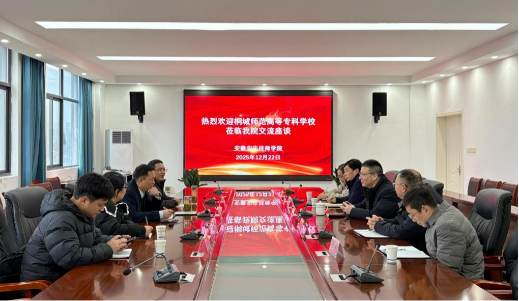 座談中,徐英武代表學(xué)院對陳濤一行的到來表示熱烈歡迎,并圍繞學(xué)院歷史沿革、招生規(guī)模、專業(yè)設(shè)置、實訓(xùn)設(shè)備配置及運行等方面情況,介紹了學(xué)院的基本辦學(xué)概況。尤其是,“十五五”規(guī)劃編制與實施在即,各院校均面臨發(fā)展轉(zhuǎn)型的關(guān)鍵機遇期,亟需主動謀劃、突破發(fā)展瓶頸。徐英武表示,希望能與桐城師范高等專科學(xué)校深度對接,探索合作辦學(xué)路徑,實現(xiàn)資源共享、優(yōu)勢互補,共同推動職業(yè)教育高質(zhì)量發(fā)展。