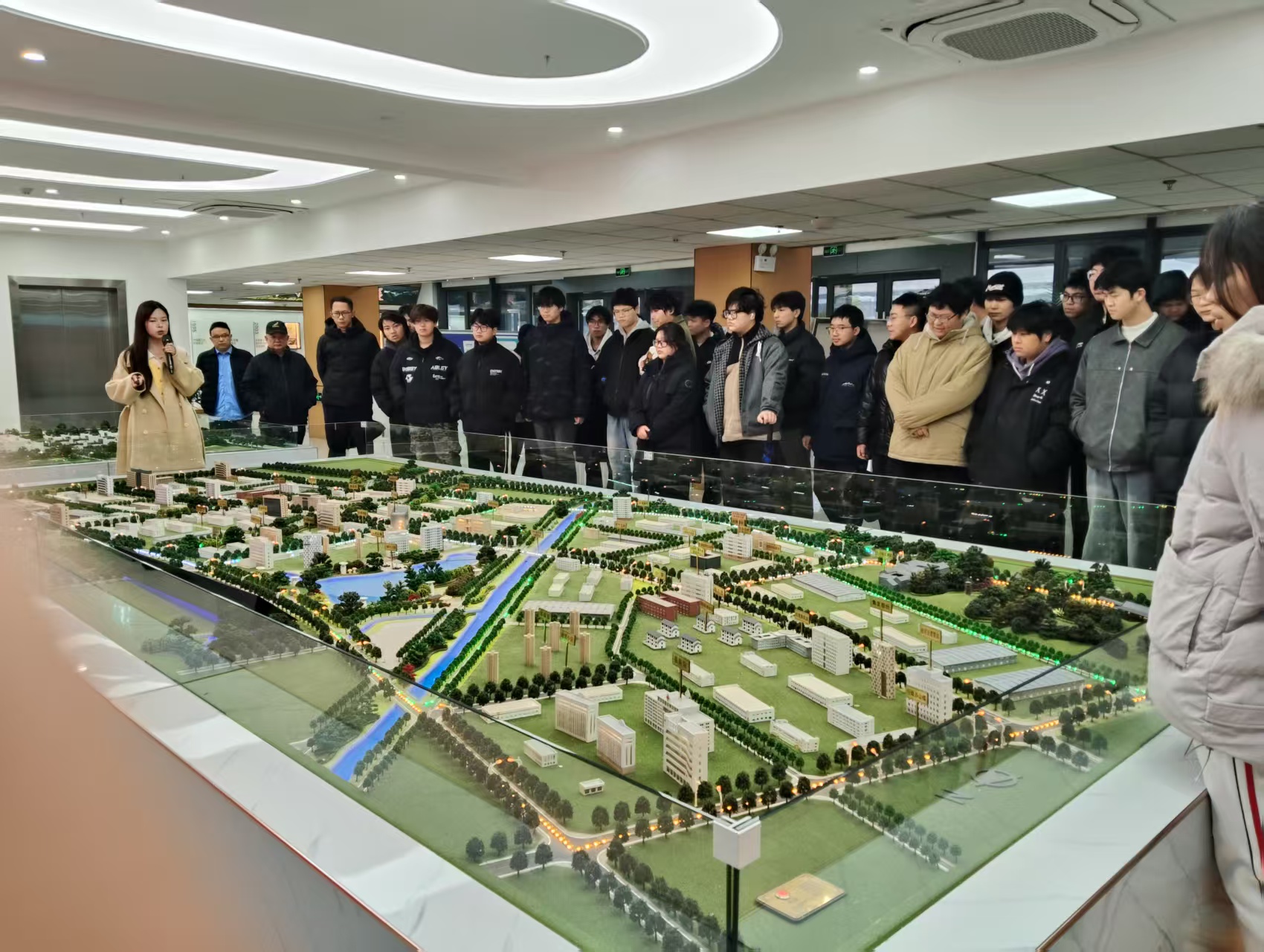 活動中,師生們先后參觀膜都小鎮(zhèn)展示區(qū)和泓冠光電生產(chǎn)展覽區(qū),通過沙盤模型、現(xiàn)場講解、座談交流等形式,深入了解膜都小鎮(zhèn)的產(chǎn)業(yè)布局、發(fā)展規(guī)劃與核心產(chǎn)業(yè)優(yōu)勢,直觀感受到功能膜產(chǎn)業(yè)的發(fā)展規(guī)模與前景。
