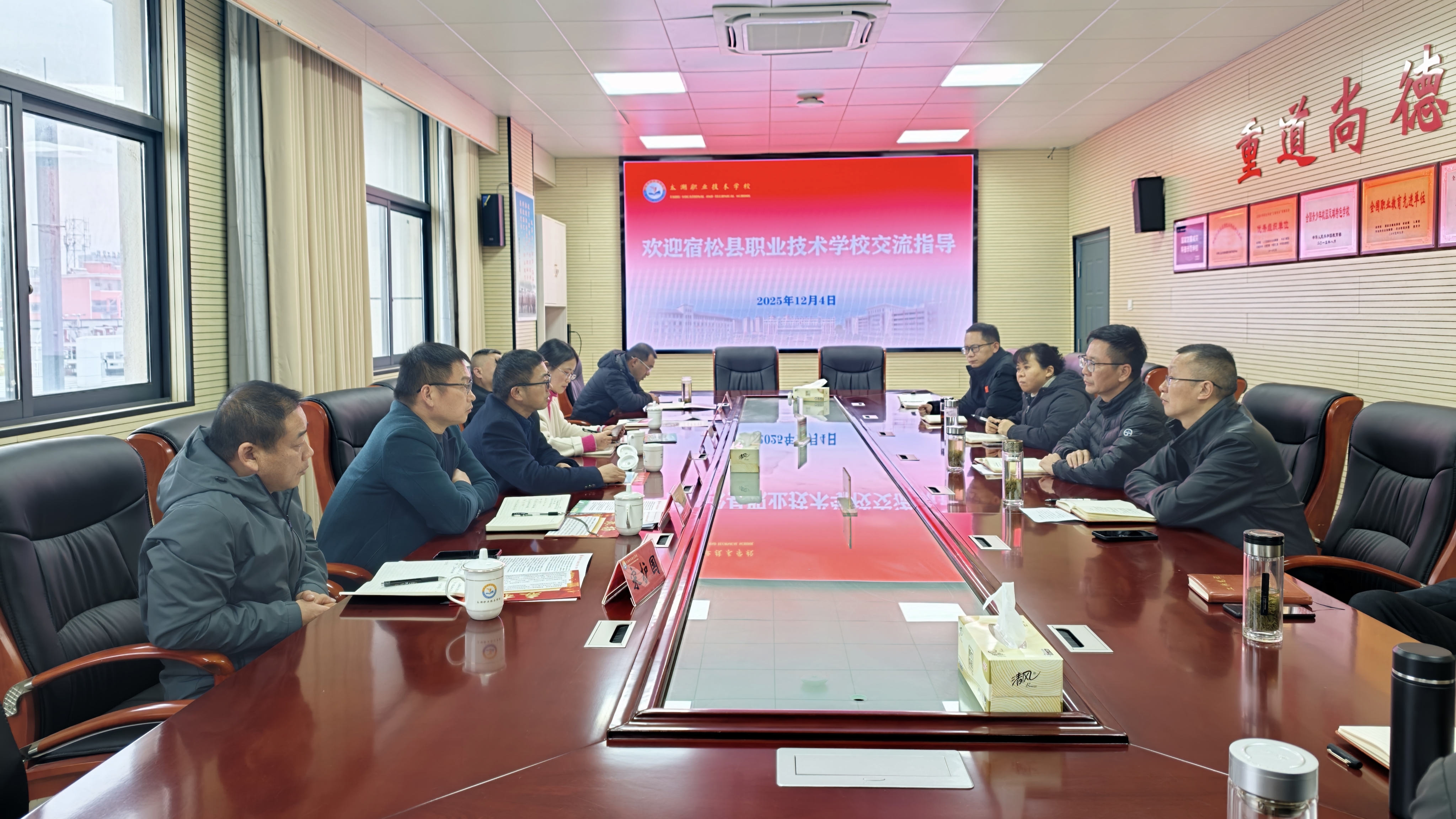 12月4日,宿松縣職業(yè)技術(shù)學(xué)校黨支部書記、校長(zhǎng)鄧勝榮率領(lǐng)調(diào)研團(tuán)隊(duì)一行6人來(lái)訪我校,圍繞專業(yè)建設(shè)、辦學(xué)層次提升、教學(xué)管理、校企合作等核心議題開展專題調(diào)研交流。我校班子成員及相關(guān)職能部門負(fù)責(zé)人參與接待,雙方通過(guò)座談研討與實(shí)地參觀,展開深入交流,凝聚發(fā)展共識(shí)。